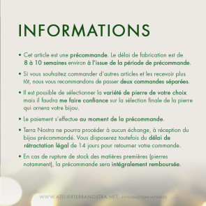 Bienvenue chez Terra Nostra !Passionnée de Nature et de minéraux, je vous invite à découvrir mes créations inspirées des forêts ainsi que des univers fantastiques et oniriques. La plupart des créations sont personnalisables et réalisées à la demande. N’hésitez pas à me contacter pour toute information ou demande de personnalisation. Bonne visite !