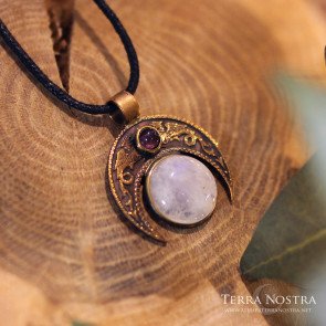 copy of "Noctis" Necklace —Large brass necklace adorned with handsculpted ivy leaves and a black moonstone round cabochon....