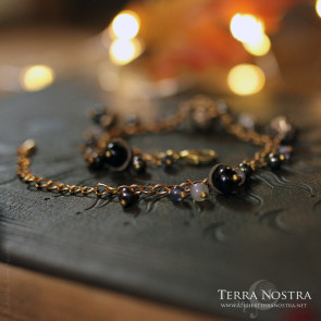 Jolie bracelet en bronze orné de perles de pierres de 4 à 6mm de diamètre (tourmaline noire,...